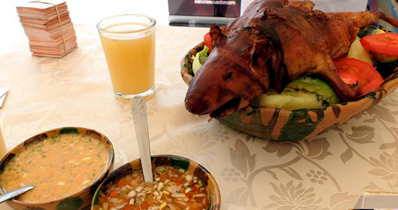 3. Cuy Asado. Plato tradicional de la sierra ecuatoriana, el cuy se lo puede comer con mote, con papas o en sopa.